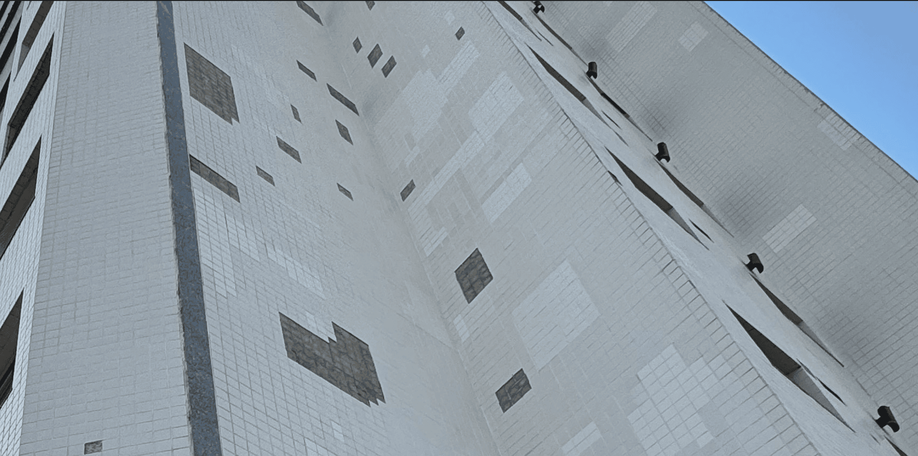 O edifício em questão possui fachadas revestidas com cerâmicas Gail 10x10 cm nas cores branca e cinza. Anos após a entrega do prédio, começaram a surgir os primeiros sinais de um problema grave: o desprendimento das peças cerâmicas.